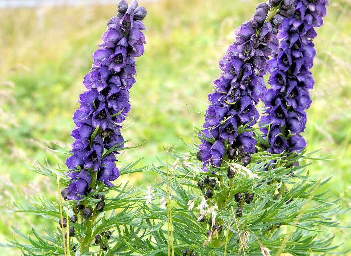 V květu je nepřehlédnutelná - mohutná, většinou jich roste více pohromadě, nápadné jsou sytě modré květy, kterým se říká "přilby" pro svůj zvláštní tvar.