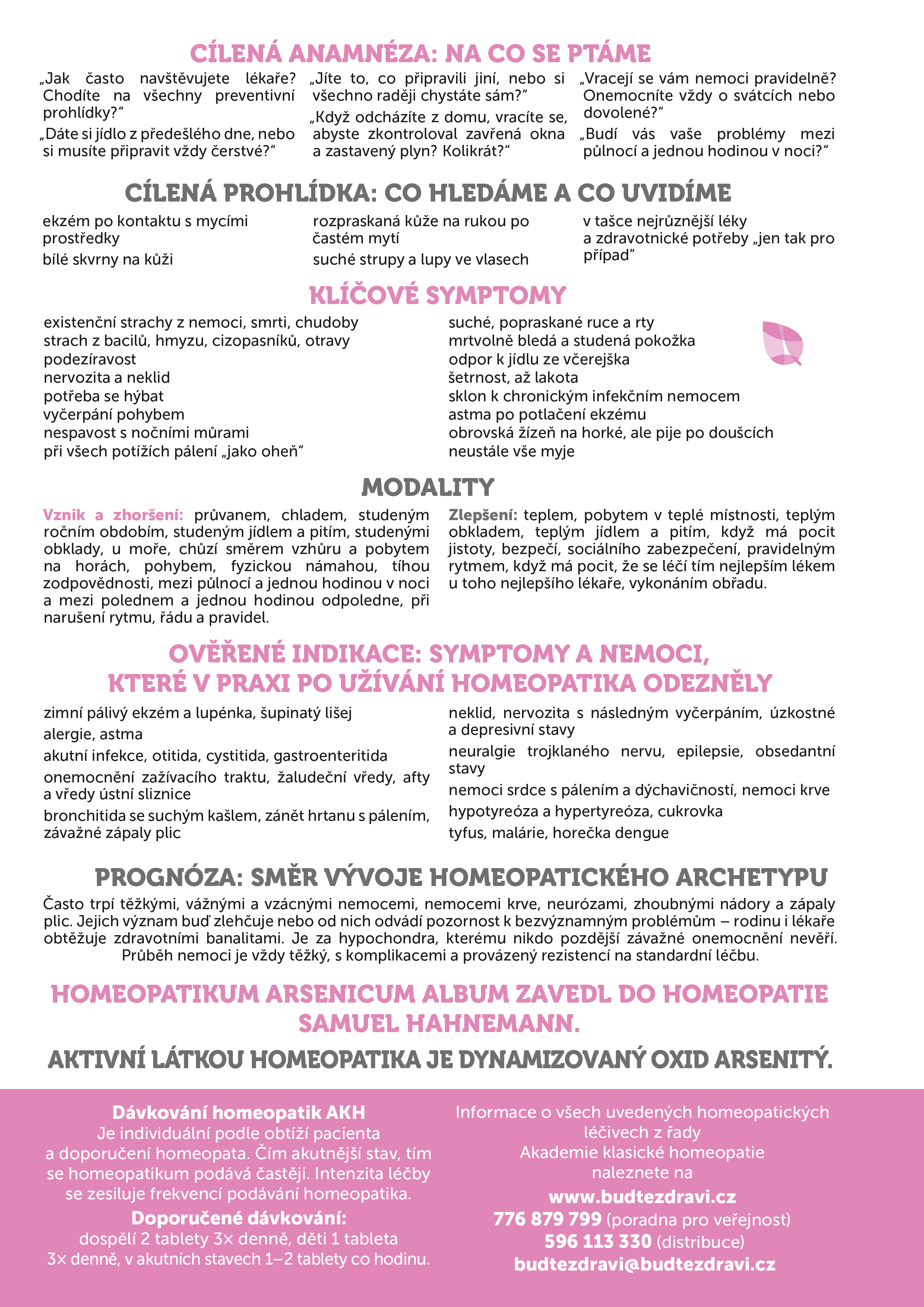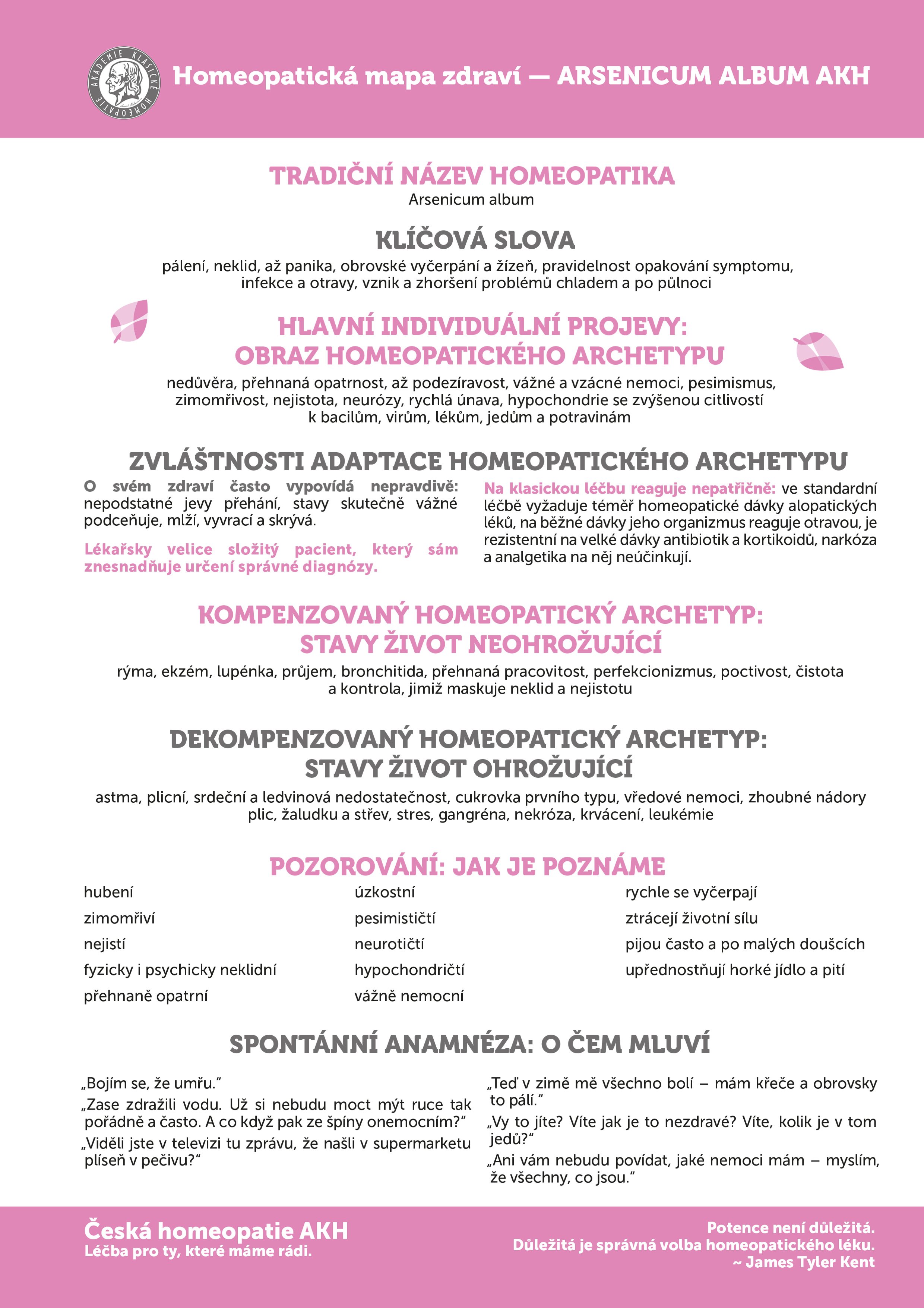 Tato mapa pomáhá porozumět komplexnímu obrazu homeopatického léku Arsenicum album AKH, který bývá indikován při akutních infekcích, průjmech, astmatu, ale i u úzkostí, hypochondrie a kožních potížích.