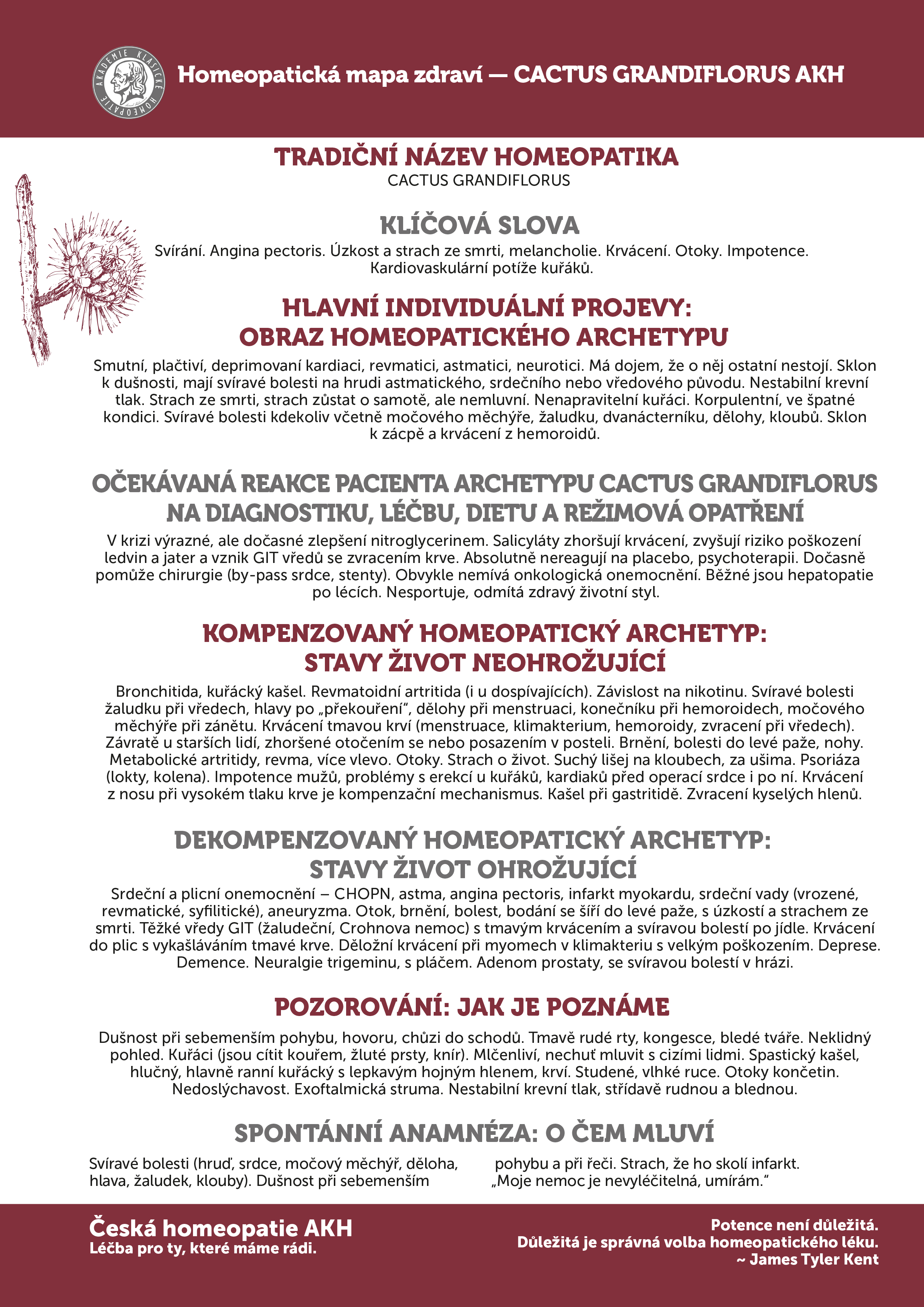 Cactus grandiflorus AKH je lékem pro situace, kdy tělo i mysl svírá neviditelná smyčka. Ulevuje u srdečních, cévních, plicních i žaludečních potíží, a vrací pacientovi možnost nadechnout se bez strachu, že další bolest může být poslední.