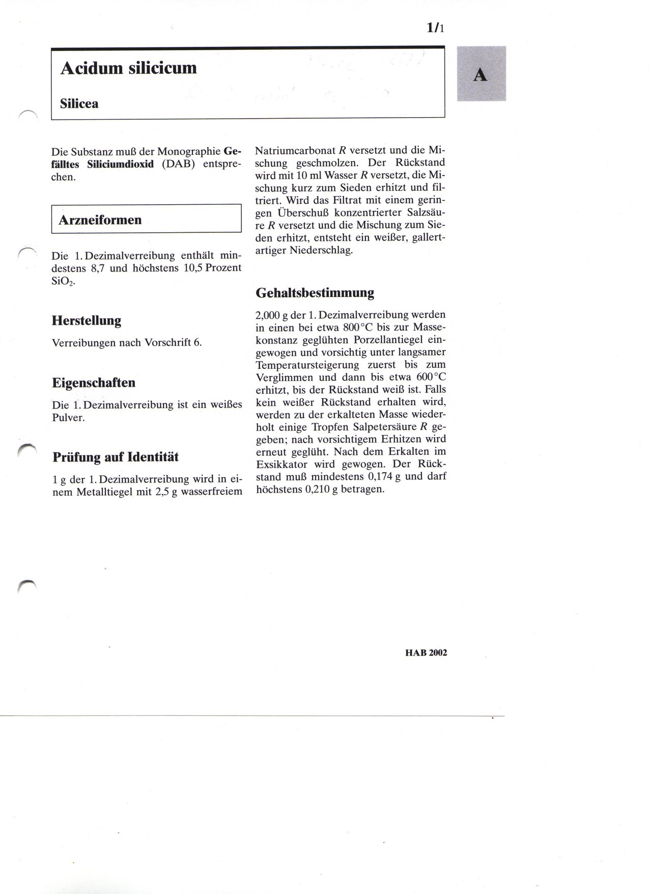 Léková forma: První decimální roztírání obsahuje nejméně 8,7 a nejvýše 10,5 procent SiO2.